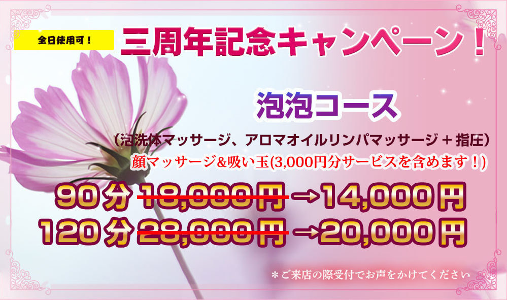 さらに、90分以上コースご利用のお客様全員1,000円サービス券を差し上げます!